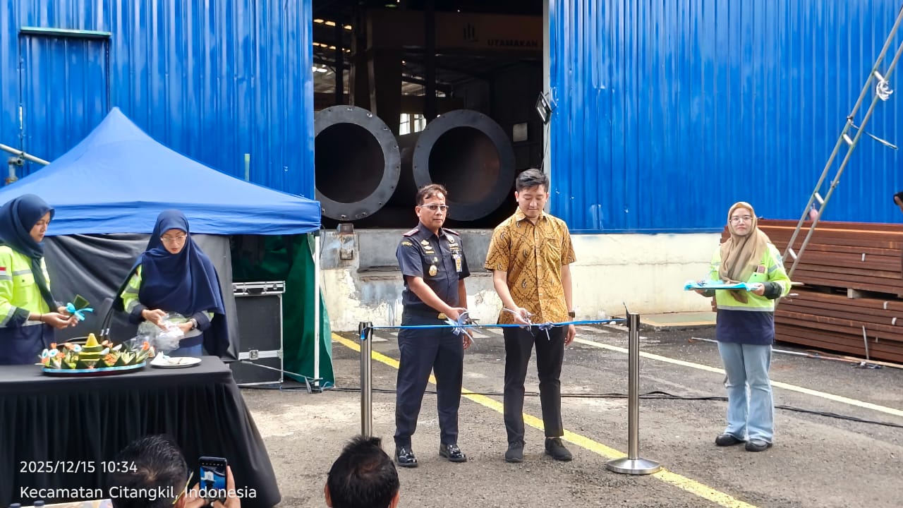 Cilegon - Kapolsek Ciwandan Kompol ANDI SUHERMAN, S.H., MM, beserta personil Polsek Ciwandan, menghadiri kegiatan Pelepasan Ekspor Baja Pape Struts Batch Ke-3 Tujuan Toronto, Negara Canada oleh PT. Trimitra Fabrikasi Engineering di Jl. Australia II Kav. N1 (KIK-1) Kel. Warnasari Kec. Citangkil Kota Cilegon, Senin (15/12/2025).