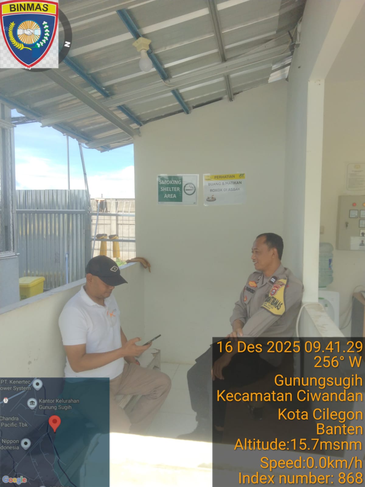 Cilegon - Bhabinkamtibmas Polsek Ciwandan Polres Cilegon Polda Banten Bangun Kemitraan Kamtibmas Dan Datangi Petugas security Meminta Agar Dapat Membantu Tugas-tugas Polri Dalam Menjaga Harkamtibmas, Selasa (16/12/2025).
