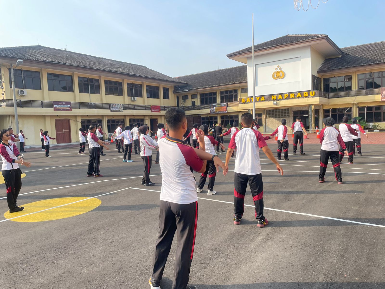 Personel Polres Cilegon Laksanakan Olahraga Bersama di Lapangan Satya Haprabu