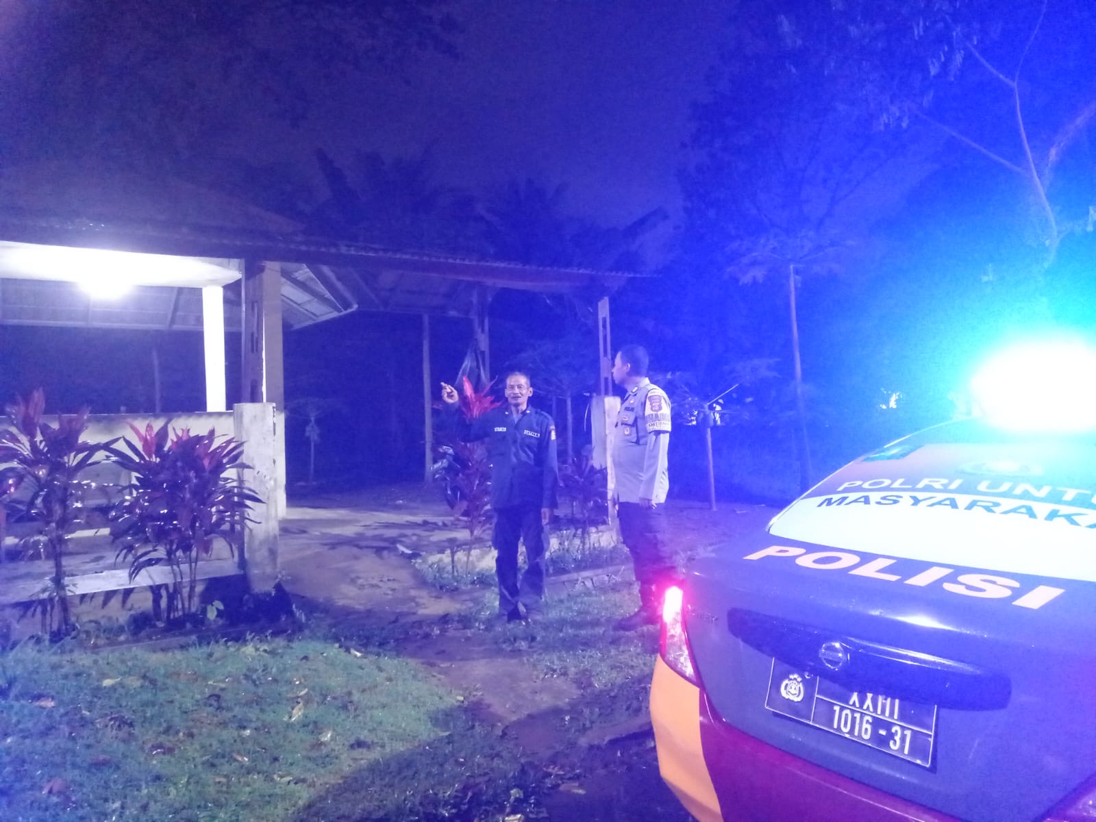 Bhabinkamtibmas Polsek Purwakarta Menyapa Petugas Pos Ronda Jl.santani Ks ,sampaikan himbauan kamtibmas