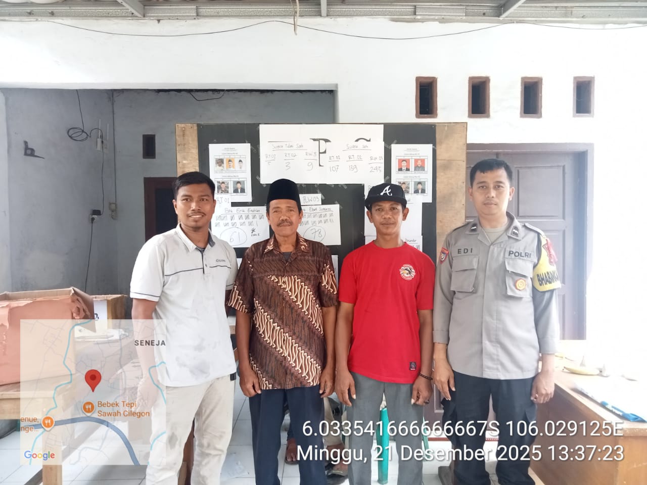 *Cilegon* - Bhabinkamtibmas Kelurahan Tamanbaru Polsek Ciwandan Polres Cilegon Polda Banten AIPDA Ediyanto menghadiri pemilihan Ketua RW 003 Lingkungan Kubang Lesung kelurahan Tamanbaru Kecamatan Citangkil Kota Cilegon, Minggu (21/12/2025).