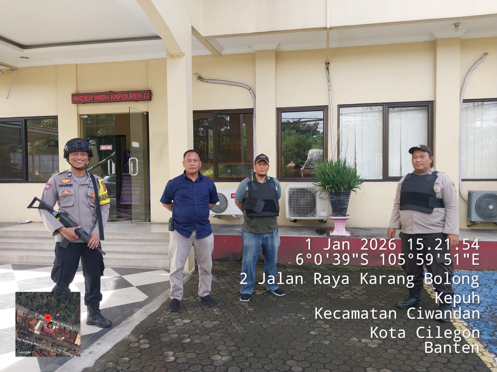 Cilegon - Guna mengantisipasi adanya potensi ancaman dan gangguan terhadap keamanan kantor maupun keselamatan personel piket jaga, Personil Polsek Ciwandan Polres Cilegon Polda Banten selalu tingkatkan kesiapsiagaan dan kewaspadaan dengan rutin menggelar kegiatan Sistem Pengamanan Mako (Sispam Mako), Kamis (01/01/2026).