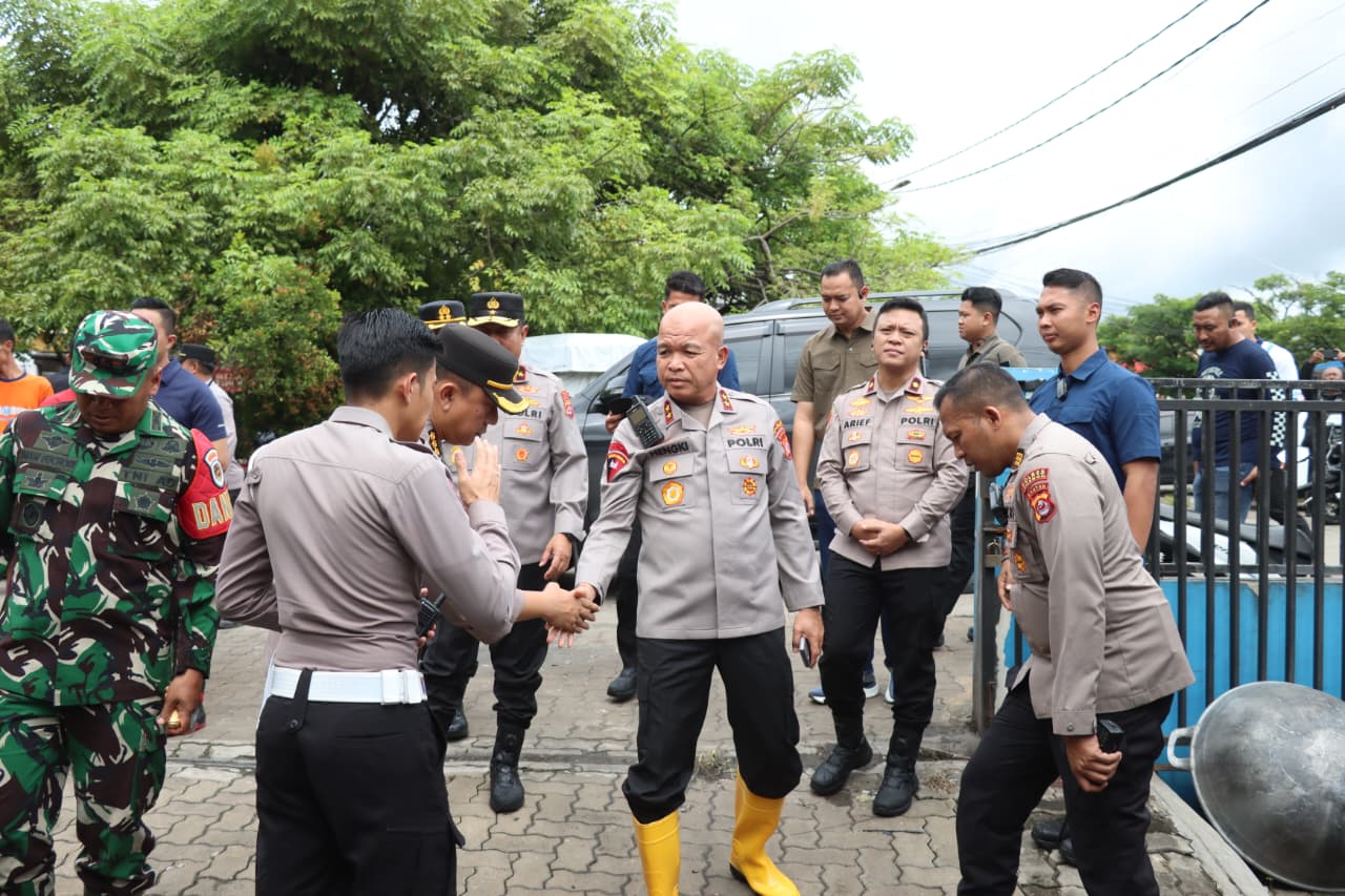Cilegon – Kapolda Banten Irjen Pol. Hengki, S.I.K., M.H. melakukan kunjungan langsung ke dapur umum siaga bencana Kota Cilegon serta sejumlah lokasi terdampak banjir sebagai bentuk kepedulian dan pengawasan terhadap kesiapan penanganan bencana serta pelayanan kepada masyarakat akibat curah hujan tinggi di wilayah Kota Cilegon, Sabtu (3/1/2026).