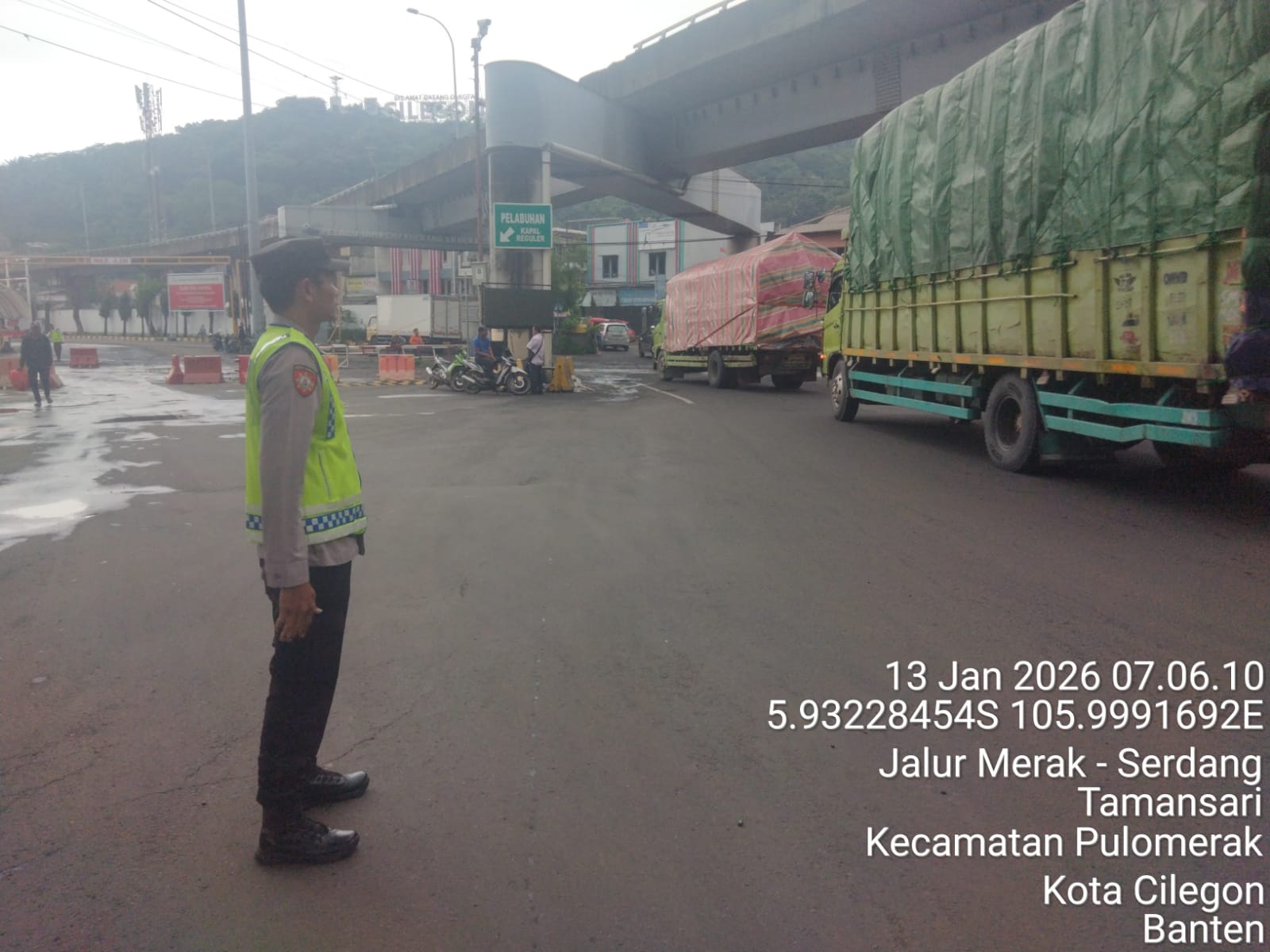 Cilegon - Dalam rangka peningkatan pelayanan prima kepada masyarakat, Kskp Merak Polres Cilegon Polda Banten melaksanakan pengaturan antrian R4 yang akan masuk ke Kapal Ferry di Pelabuhan Merak, Selasa (13/01/2026).