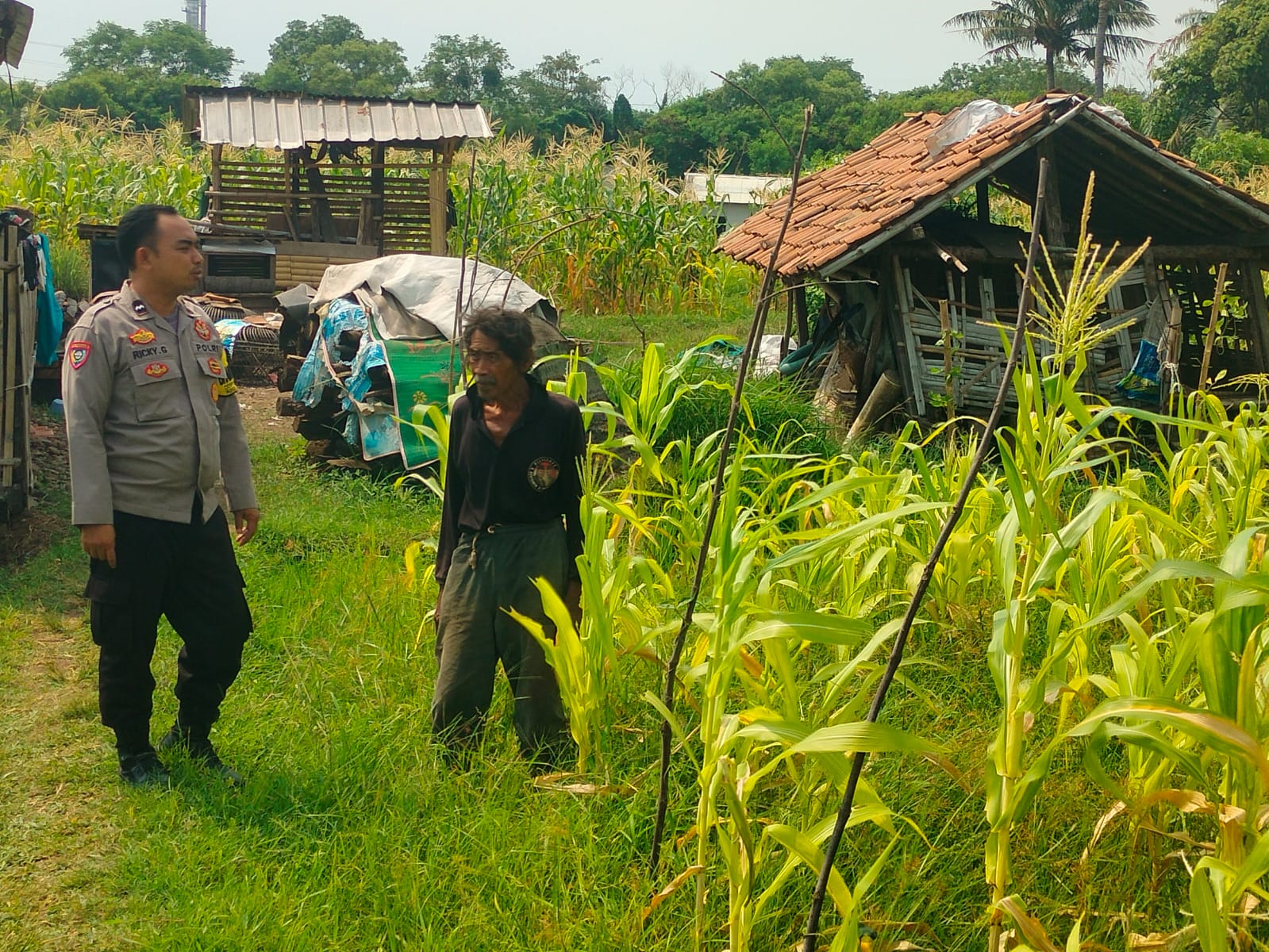 memantau lahan jagung pok tani sinarjaya kecamatan.puloampel Desa margasari oleh Bhabinkamtibmas Polsek Puloampel