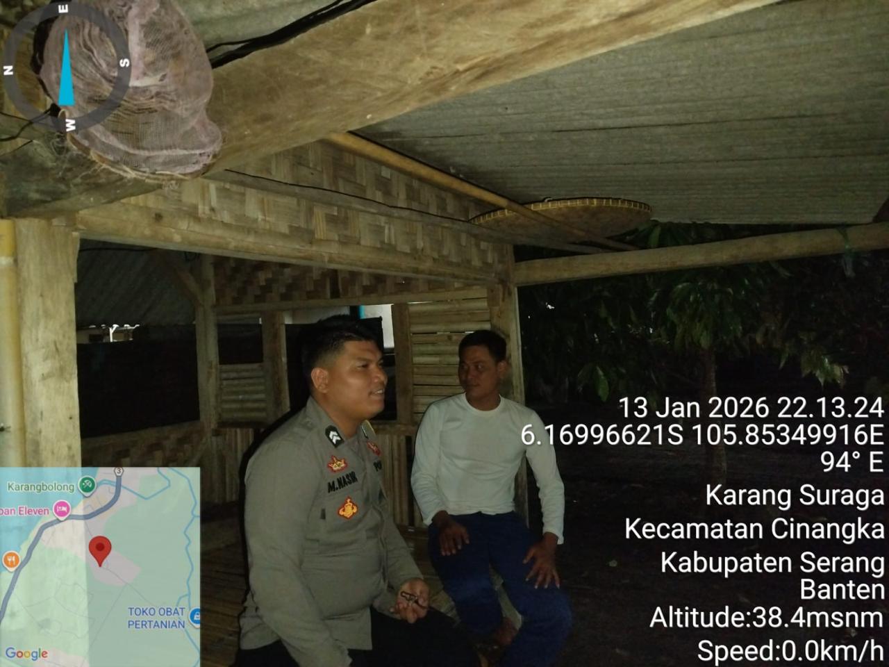 Seperti biasanya di jam – jam rawan anggota Polsek Cinangka Polres Cilegon Polda Banten melakukan patroli kewilayahan dengan sasaran tempat-tempat yang dianggap rawan tindak kejahatan, untuk kali ini anggota patroli Polsek Cinangka berpatroli menyasar ke Pemukiman warga Serta di jalan-jalan yang rawan di Cinangka , Kab Serang.