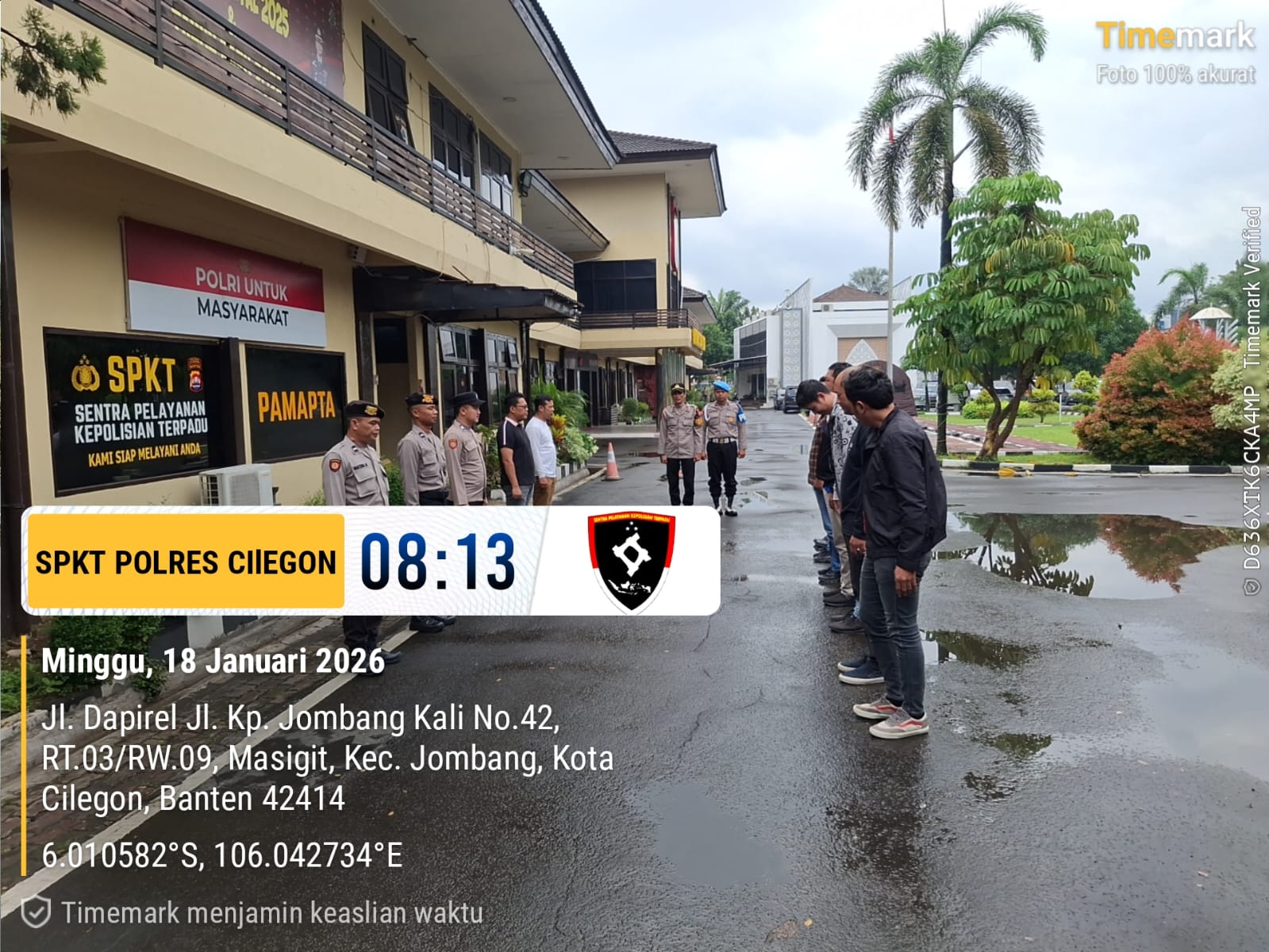 Cilegon, personel Satreskrim Polres Cilegon Polda Banten melaksanakan piket di penjagaan pintu masuk Polres Cilegon Polda Banten untuk memastikan mako Polres Cilegon dalam keadaan aman dan nyaman dalam melayani Masyarakat tanpa adanya gangguan kejahatan. Minggu (18/01/2026).