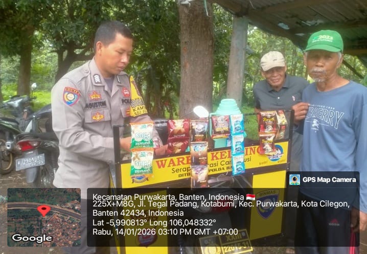 Personil sat intelkam melakukan koordinasi dengan tokoh masyarakat kec. Cibeber kota cilegon.