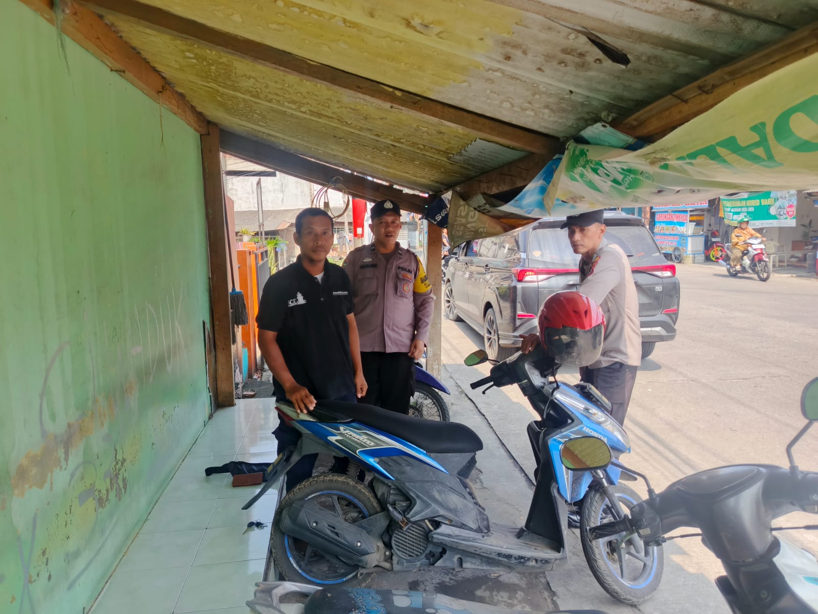 Personil sat intelkam melakukan koordinasi dengan tokoh masyarakat kec. Ciwandan kota cilegon.