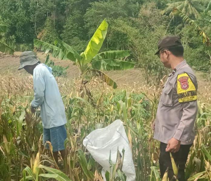 Pendampingan Polsek Anyar Panen Jagung Dengan Kelompok Tani