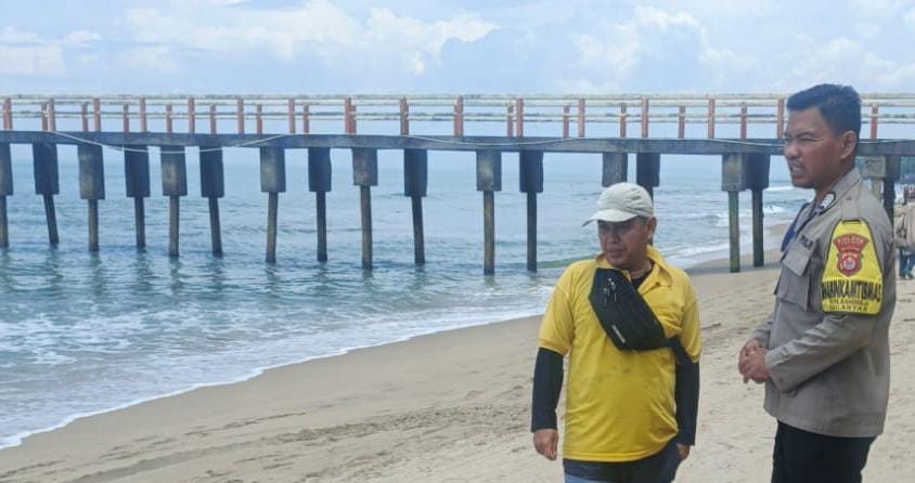 Personil Polsek Anyar Polres Cilegon Polda Banten melaksanakan kegiatan pengamanan dalam rangka pengecekan situasi pantai dan Jalur, Sabtu (14/02).