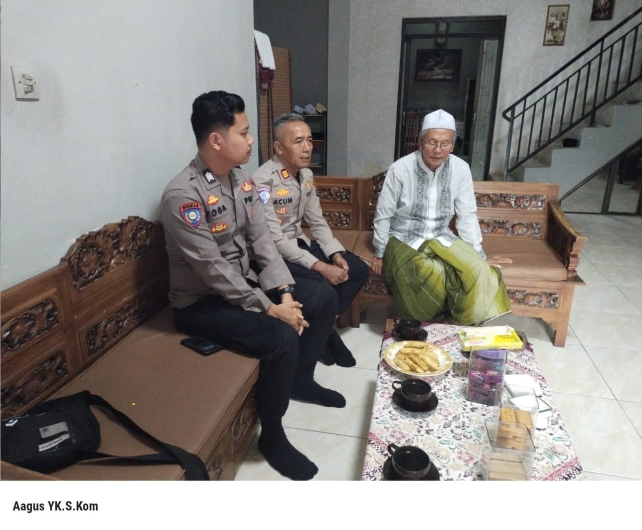 Kapolres Cilegon Polda Banten AKBP Dr. Martua Raja Taripar Laut Silitonga melalui Kapolsek Mancak  AKP ACUM SUTARLIA Beserta Bhabinkamtibmas AIPDA AGUS YEYEN K, BRIGADIR  YOGA SAPUTRA, Melaksanakan Kegiatan  Sambang dan Dialogis Kepada tokoh masyarakat. dan kapolsek berpesan kepad tokoh masyarakat memhono utnuk  bimbingannya dan arahan kepada pak H.yusuf selaku tokoh yang dituakan dan bersama sama menjaga Kamtibmas diwilayah hukum Polsek mancak Mengimplementasikan Program Commander Wish Kapolres Cilegon "TRENDING" (Transparan, Responsif, Elektronik, Normatif, Dedikatif, Inovatif, Netral, Good Government).