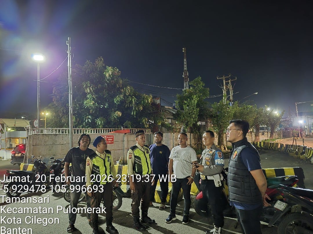 Cilegon - Personil Polsek Kskp Merak Polres Cilegon melaksanakan patroli di kawasan pelabuhan merak memberikan rasa aman dan damai, Sabtu (21/02/2026)