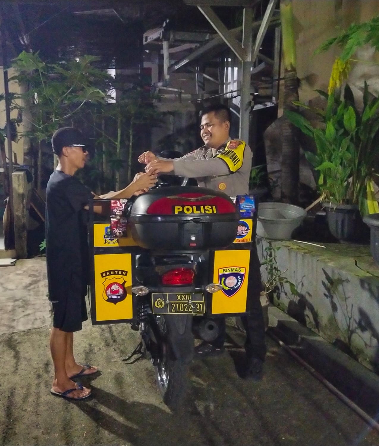 Anggota Bin Polmas dan Bhabinkamtibmas membagikan sarana kontak seperti: