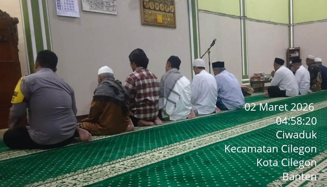 Cilegon – Polres Cilegon Polda Banten, Personil Polsek Cilegon Polres Cilegon menggelar kegiatan Pembinaan Rohani dengan shalat subuh keliling di Masjid Al - Muhajirin Jl. Kh. TB. Ismail Kavling Blok G Rt.007/006 Kel.Ciwaduk Kec. Cilegon Kota Cilegon, Senin (02/03/2026).