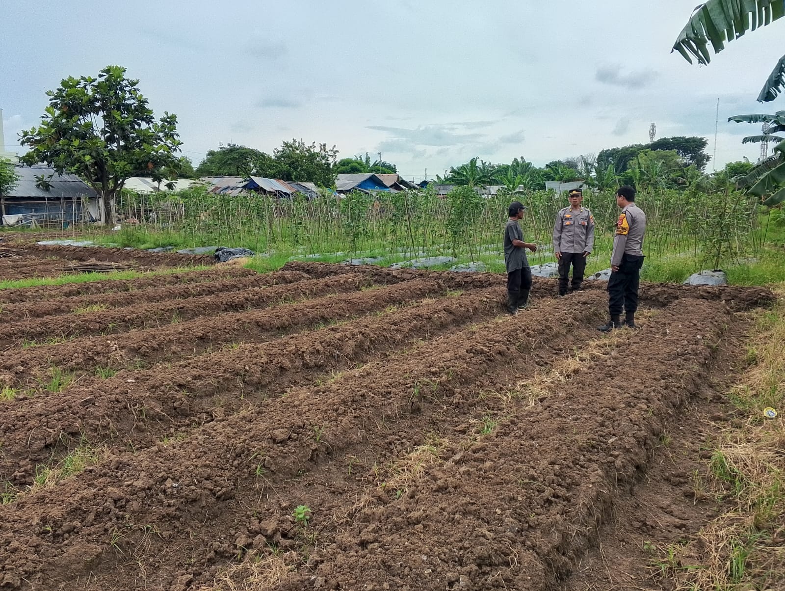 Cilegon - Dalam upaya mendukung program ketahanan pangan nasional Panit Binmas Polsek Ciwandan IPTU Mustriatno Bersama Bhabinkamtibmas Polsek Ciwandan Polres Cilegon Polda Banten AIPDA Mere Erlansyah melaksanakan kegiatan sambang dan kunjungan ke Lahan Produktif warga di lingkungan Kelurahan Warnasari kecamatan Citqngkil kota Cilegon, Senin (02/03/2026).