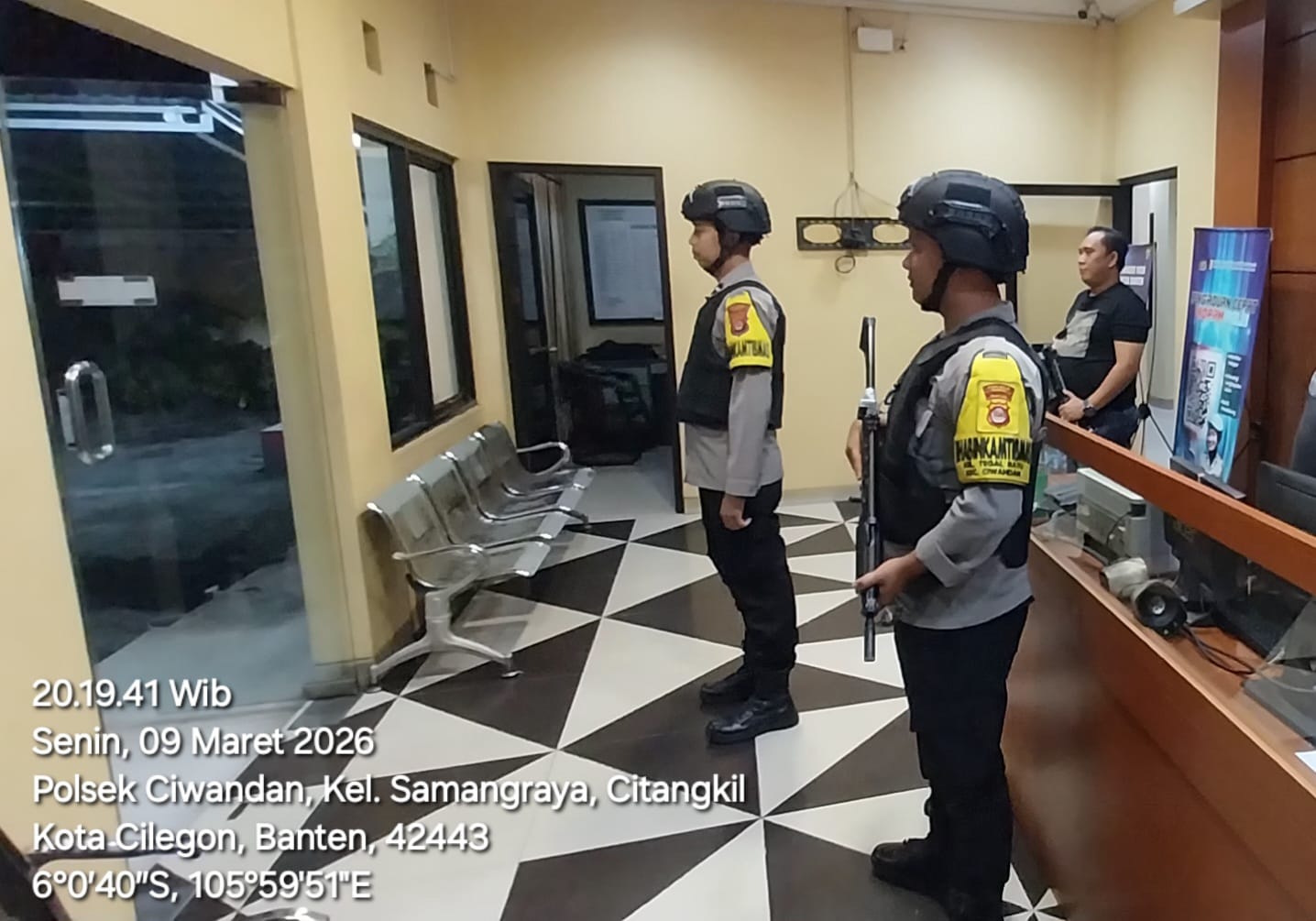 Cilegon - Guna mengantisipasi adanya potensi ancaman dan gangguan terhadap keamanan kantor maupun keselamatan personel piket jaga, Personil Polsek Ciwandan Polres Cilegon Polda Banten selalu tingkatkan kesiapsiagaan dan kewaspadaan dengan rutin menggelar kegiatan Sistem Pengamanan Mako (Sispam Mako), Selasa (10/03/2026).