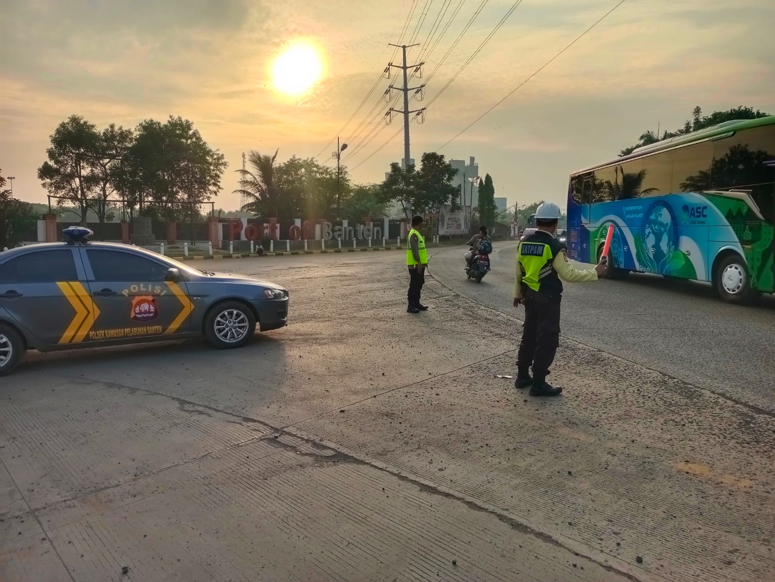 Kapolres Cilegon AKBP Martua Raja Taripar Laut Silitonga Melalui Kapolsek Kskp Banten Polres Cilegon AKP Fredo Leonard menyampaikan Laksanakan Pengamanan Sesuai plotinganya lakukan Pengaturan Supaya Arus Lalu Lintas tetap Berjalan lancar dan Pastikan tidak ada hambatan.
