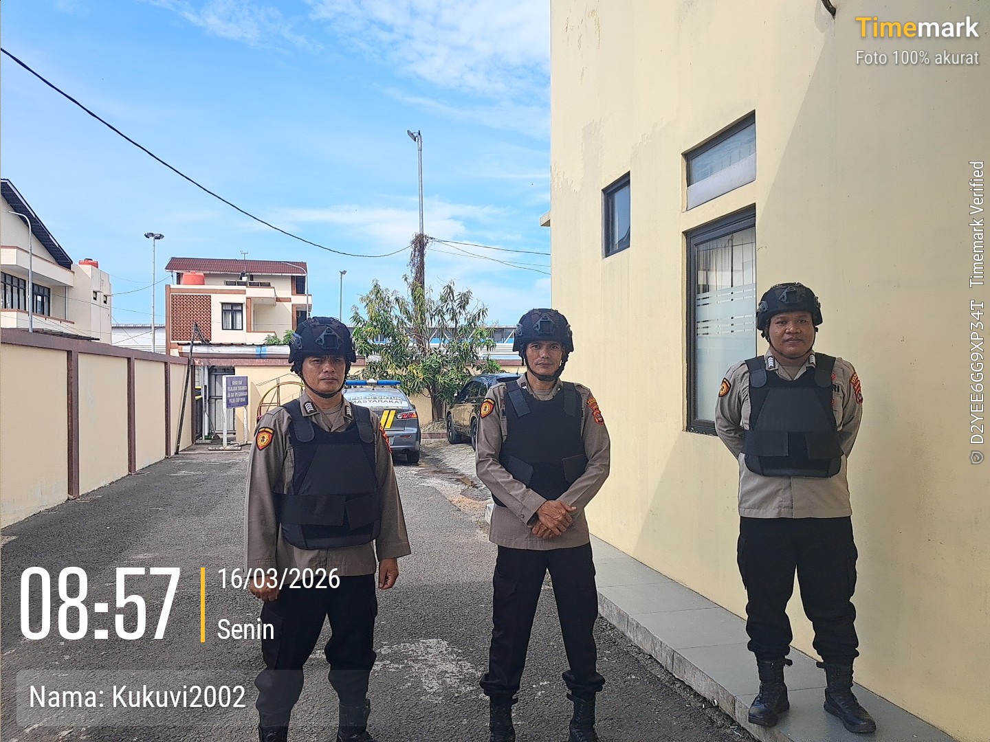 Cilegon - Personel piket jaga Polsek Kskp Merak Polres Cilgon Polda Banten melaksanakan siaga 1 Polsek pelaksanaan Sispam Mako oleh piket siaga dipimpin oleh Kspk Polsek Kskpy Merak Polres Cilegon Polda Banten, Senin (16/03/2026).