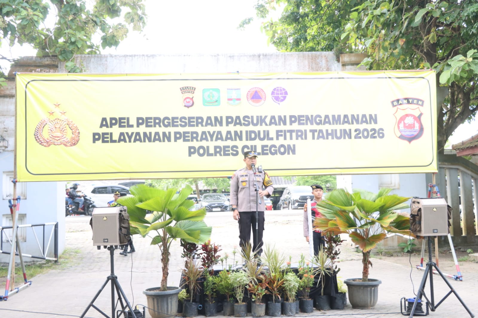 ANYER, SERANG – Dalam rangka menjamin keamanan dan kenyamanan masyarakat yang merayakan libur Lebaran Idul Fitri 1447 H, Polres Cilegon melaksanakan Apel Pergeseran Pasukan Pengamanan Wisata Operasi Ketupat Maung 2026. Kegiatan ini dipusatkan di Pantai Mercusuar Anyer, Kabupaten Serang, pada Minggu pagi (22/3/2026).