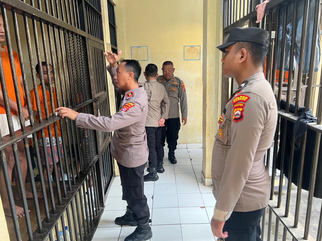AKP Haris surahman laksanakan giat pengechekan dan monitoring terhadap ruang tahanan polres cilegon.