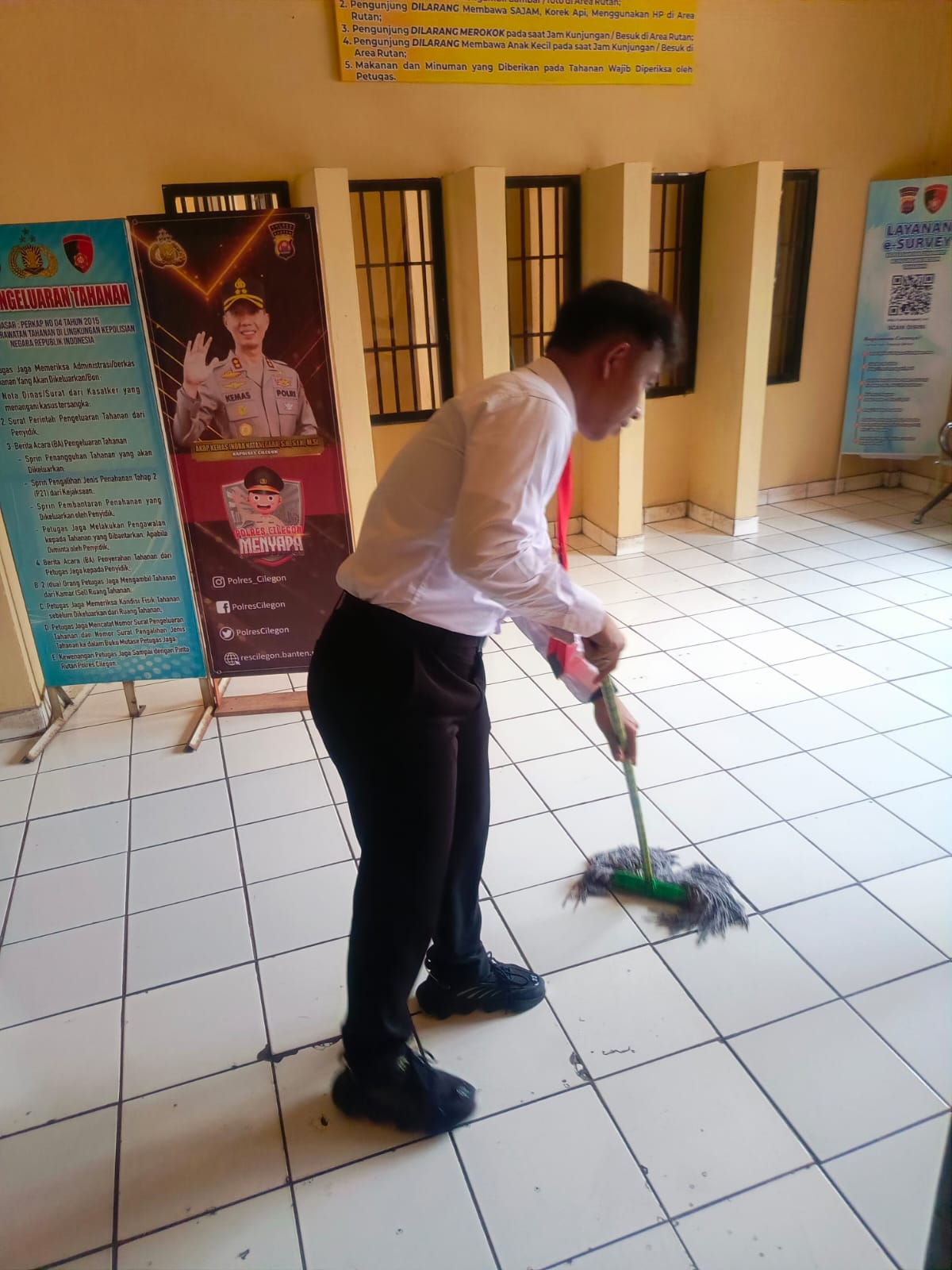 Anggota Piket Sattahti Polres Cilegon Selalu Melakukan Merutinkan Bersih-Bersih Di Sekitar Rutan Polres Cilegon Agar Terhindar Dari Penyakit.