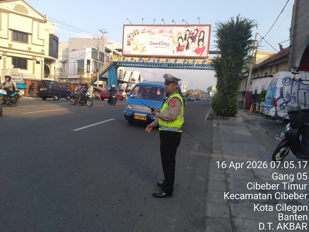 Cilegon, Satlantas Polres Cilegon Polda Banten – Berikan pelayanan kepada masyarakat Kasat lantas Polres Cilegon AKP Ridwan memerintahkan jajaran lalulintas untuk melaksanakan pengaturan lalu lintas di penggal – penggal jalan yang rawan kemacetan di Kota Cilegon, (Kamis,16/4/2026)