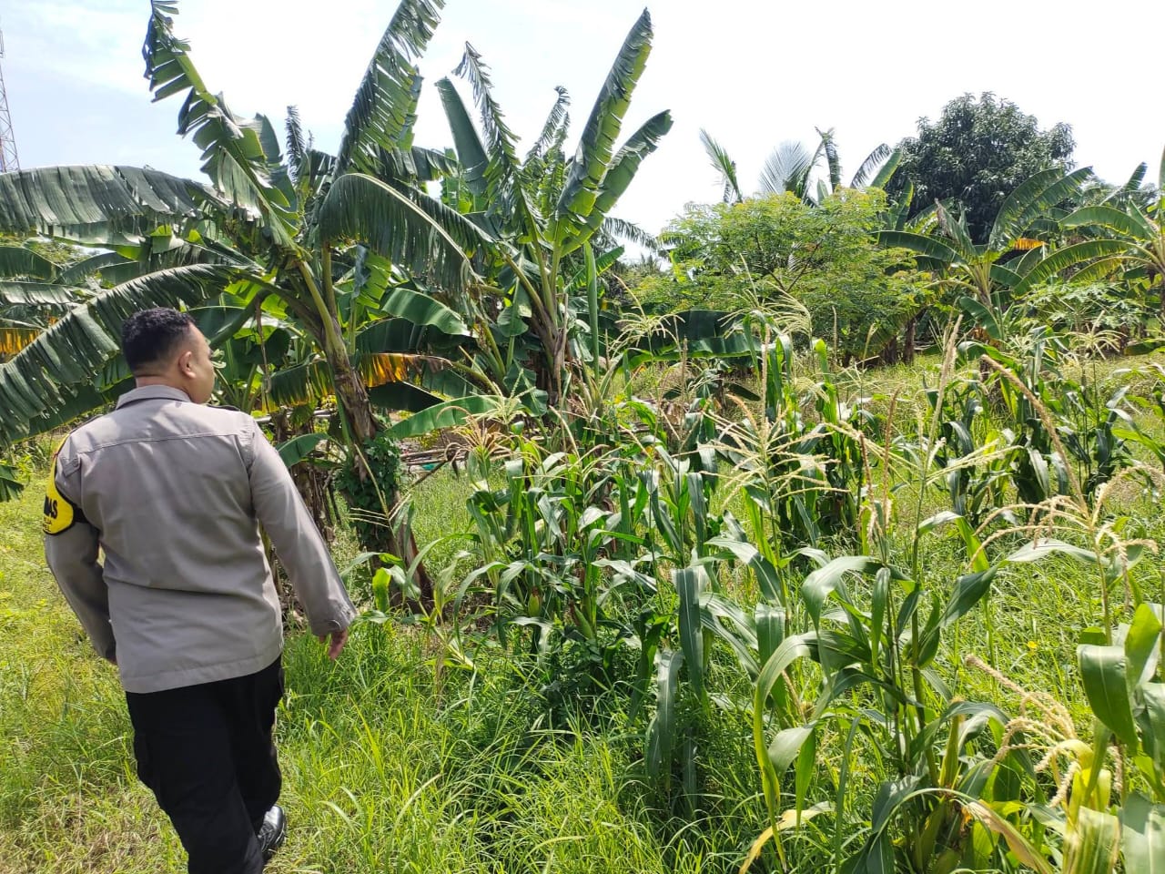 Pantau lahan jagung pok tani sinarjaya kecamatan.puloampel Desa Banyuwangi oleh Bhabinkamtibmas Polsek Puloampel