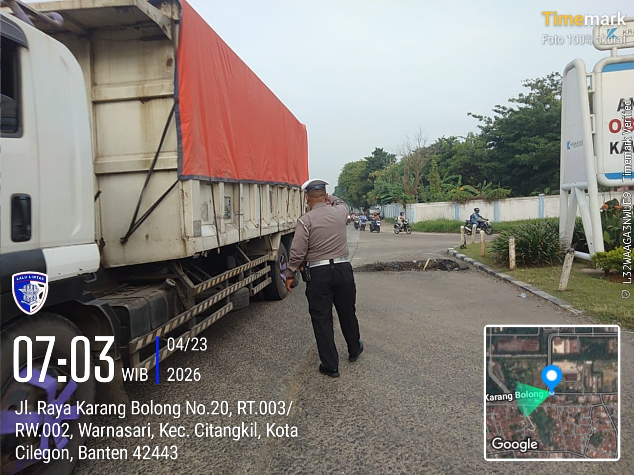 Cilegon - Pelayanan Prima Kepolisian Kepada Warga Masyarakat dan Guna menciptakan situasi lalu lintas yang aman, tertib dan lancar, Personel Unit Lantas Polsek Ciwandan Polres Cilegon Polda Banten secara rutin melaksanakan pengaturan lalu lintas, Rabu (22/04/2026).