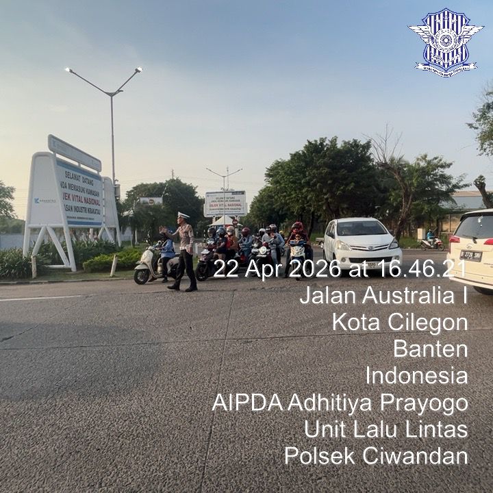 Cilegon - Pelayanan Prima Kepolisian Kepada Warga Masyarakat dan Guna menciptakan situasi lalu lintas yang aman, tertib dan lancar, Personel Unit Lantas Polsek Ciwandan Polres Cilegon Polda Banten secara rutin melaksanakan pengaturan lalu lintas, Rabu (22/04/2026).