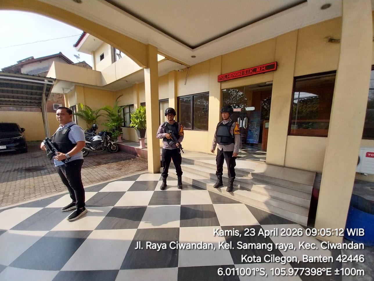 Cilegon - Dalam Kesiap Siagaan dan Memperketat Penjagaan Mako (Markas Komando), Personil Polsek Ciwandan Polres Cilegon Polda Banten melaksanakan Sistem Pengamanan Markas Komando (Sispam Mako), Rabu (22/04/2026).