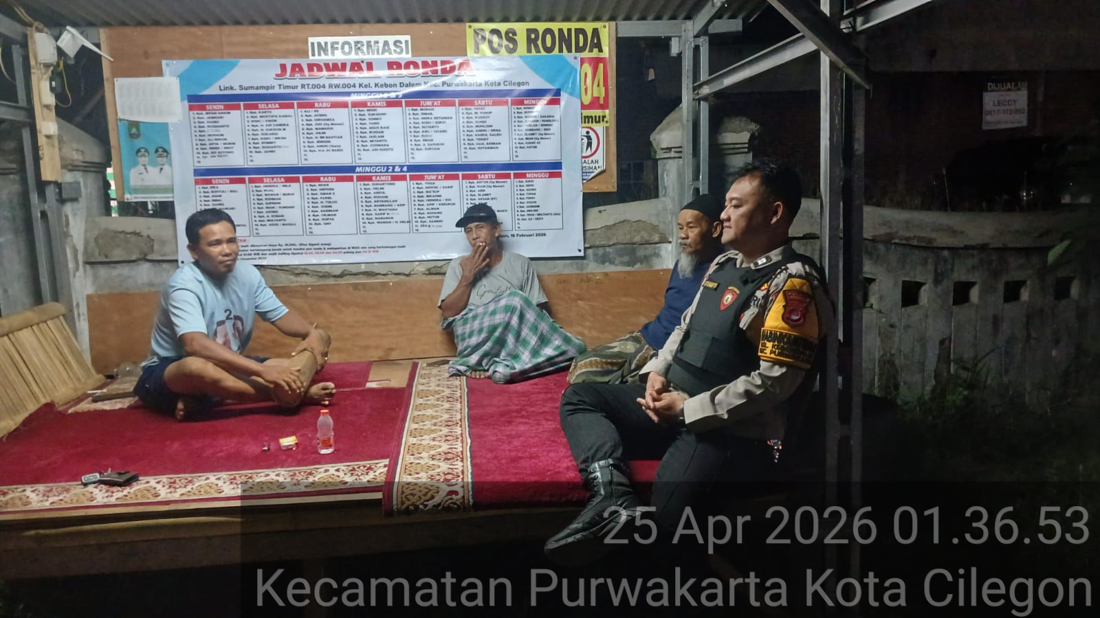 Cilegon - Polres Cilegon Polda Banten, Dalam Rangka Ciptakan situasi kamtibmas kondusif Personil Polsek Purwakarta laksanakan himbauan kamtibmas kepada rt dan rw serta warga sekitar agar selalu menjaga kamtibmas secara bersama-sama salah satunya mengaktifkan dan meningkatkan kegiatan siskamling di wilayahnya. serta sebagai Cooling Sistem Kamtibmas di wilayah binaan. Sabtu (25/04/2026).